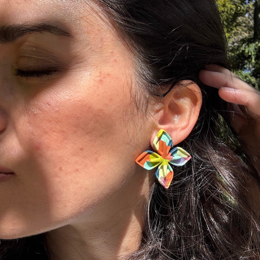 La magia detrás de nuestros pendientes artesanales está en el proceso. Cada pieza es moldeada a mano utilizando diferentes técnicas, desde el uso de moldes hasta el modelado a mano alzada. La arcilla polimérica para pendientes se hornea a bajas temperaturas, lo que permite que el material adquiera la dureza necesaria para resistir el uso diario.