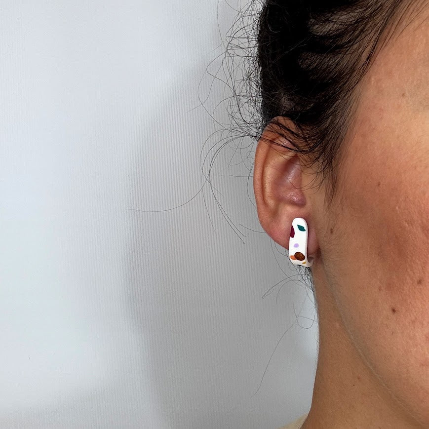 La magia detrás de nuestros pendientes artesanales está en el proceso. Cada pieza es moldeada a mano utilizando diferentes técnicas, desde el uso de moldes hasta el modelado a mano alzada. La arcilla polimérica para pendientes se hornea a bajas temperaturas, lo que permite que el material adquiera la dureza necesaria para resistir el uso diario.