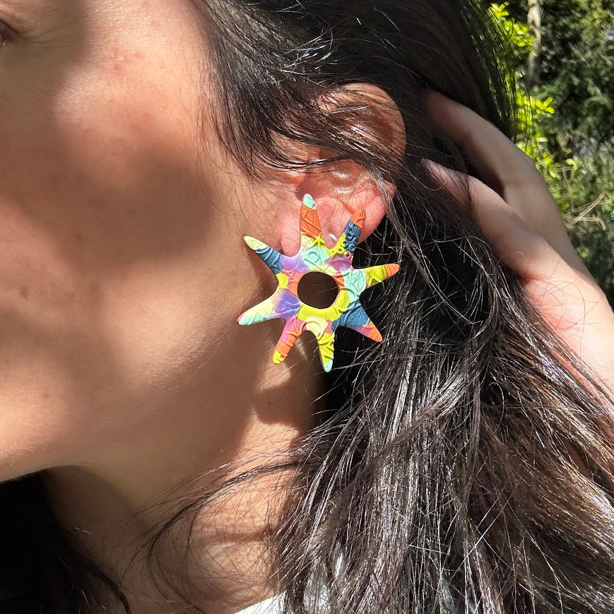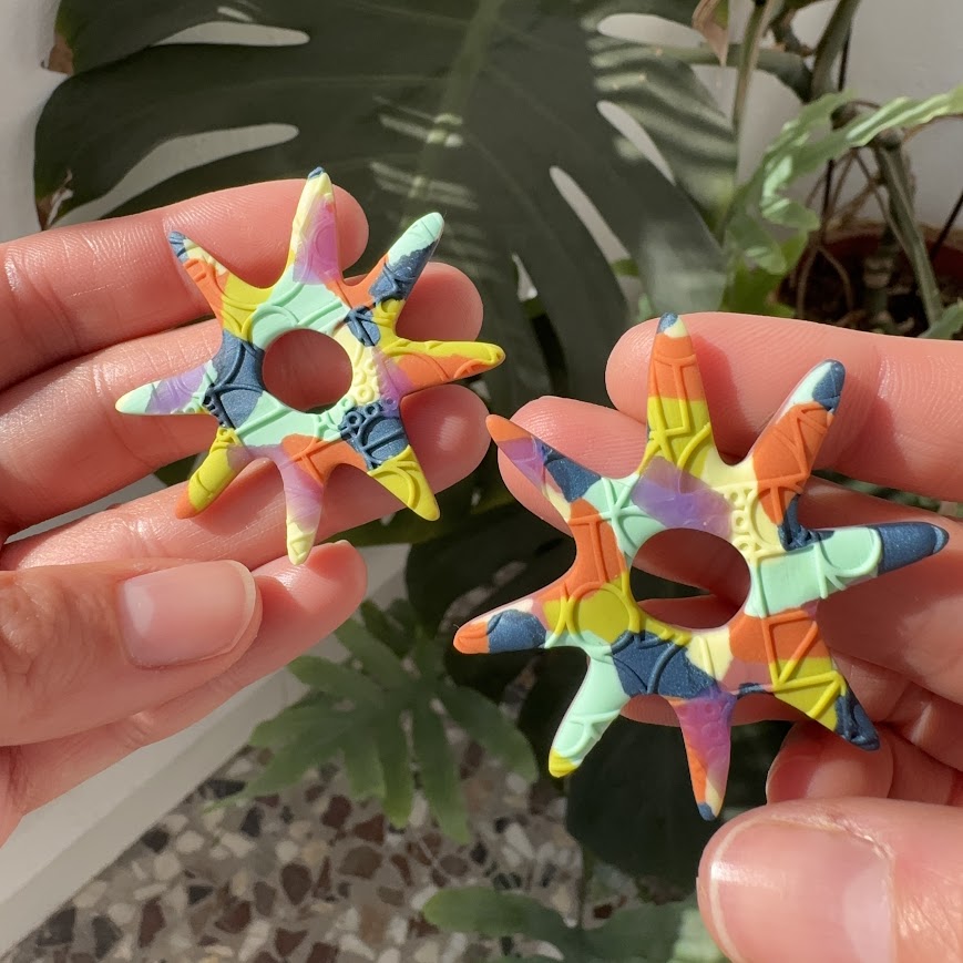 La magia detrás de nuestros pendientes artesanales está en el proceso. Cada pieza es moldeada a mano utilizando diferentes técnicas, desde el uso de moldes hasta el modelado a mano alzada. La arcilla polimérica para pendientes se hornea a bajas temperaturas, lo que permite que el material adquiera la dureza necesaria para resistir el uso diario.
